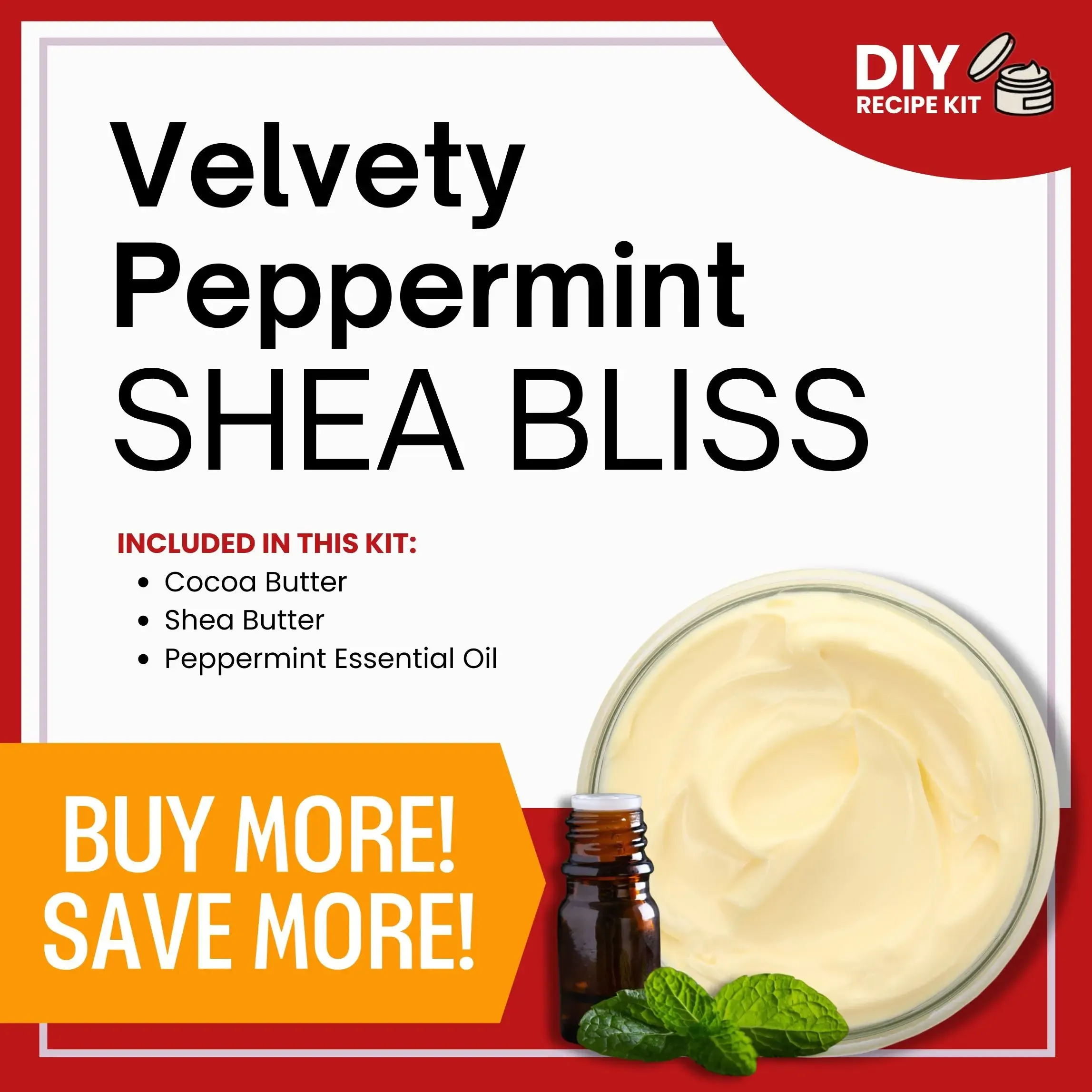 Unleash your creativity and indulge your senses with our DIY Recipe Kit for crafting indulgent Velvety Peppermint Shea Bliss Body Butter infused with Peppermint Essential Oil.